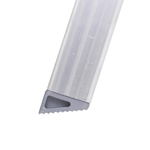 Possui pés antiderrapantes para maior estabilidade, degraus largos que oferecem conforto durante o uso e sistema de articulação com trava de segurança para evitar acidentes.