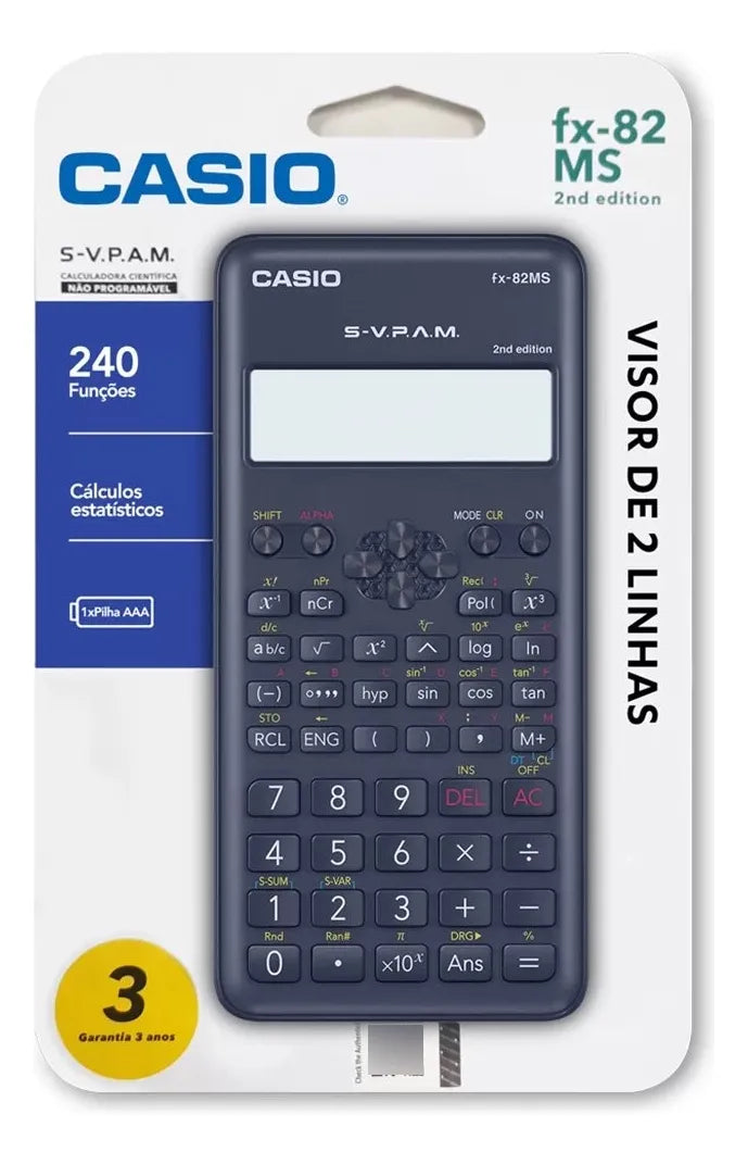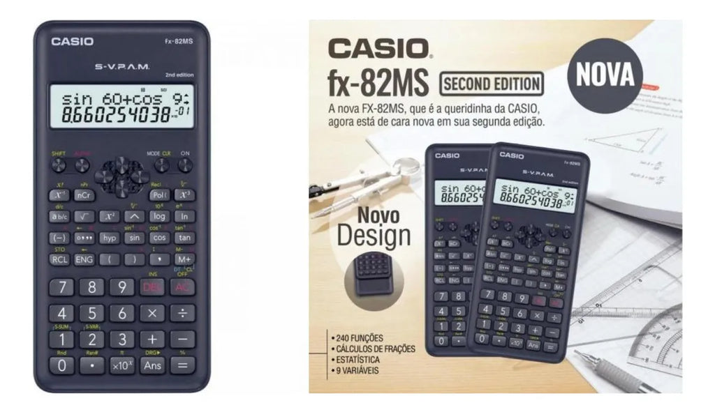 Calculadora Científica Casio Fx-82ms 2nd Edition Com 240 Funções Segunda Edição S-V.P.A.M. Acompanha Capa Cor Preto